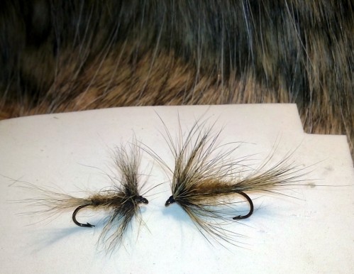 A gauche hameçon #16, cerques et collerette en chevreuil. A droite hameçon #12, cerques et collerette en lièvre.
