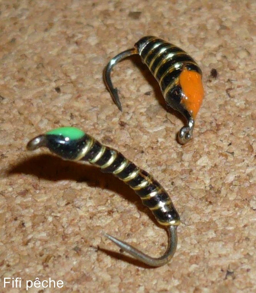 7. Former une tête avec la soie de montage. Cyanoliser la soie et couper le fil. A cette étape on peu aussi faire un tag sur le dessus, pour suggerer le sac alaire. Choix des couleurs, orange, noir, rose, violet, c’est comme vous voulez.